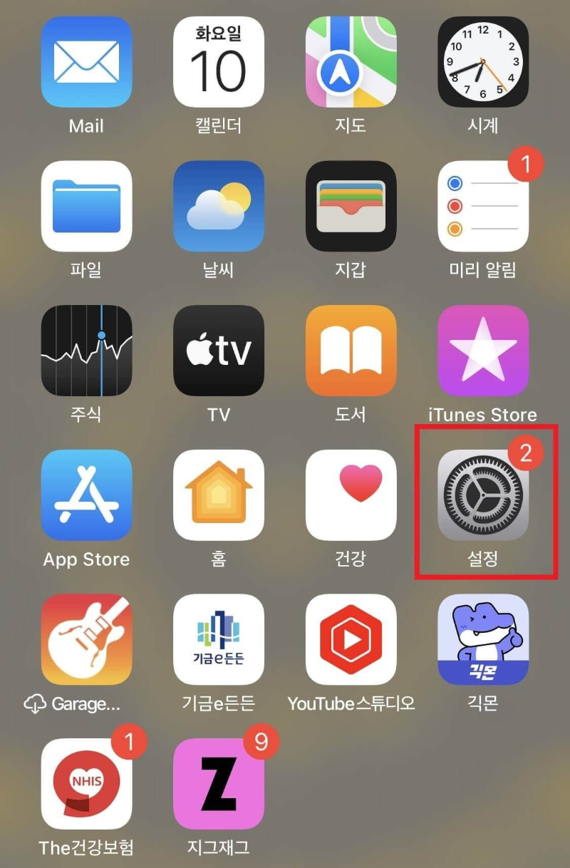 먼저 아이폰의 '설정' 아이콘을 클릭합니다.